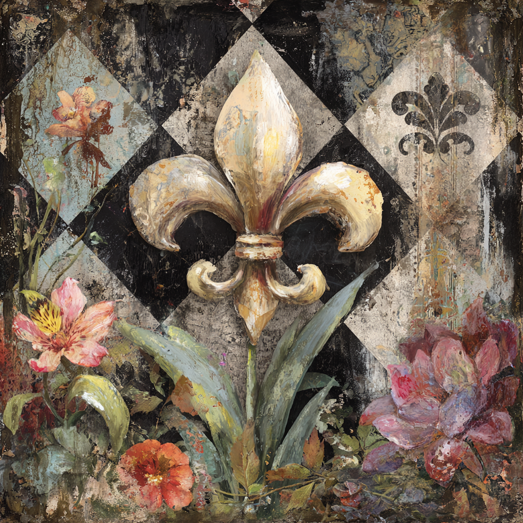 French Country Florals and Fleur De Lis Mixed Media Print