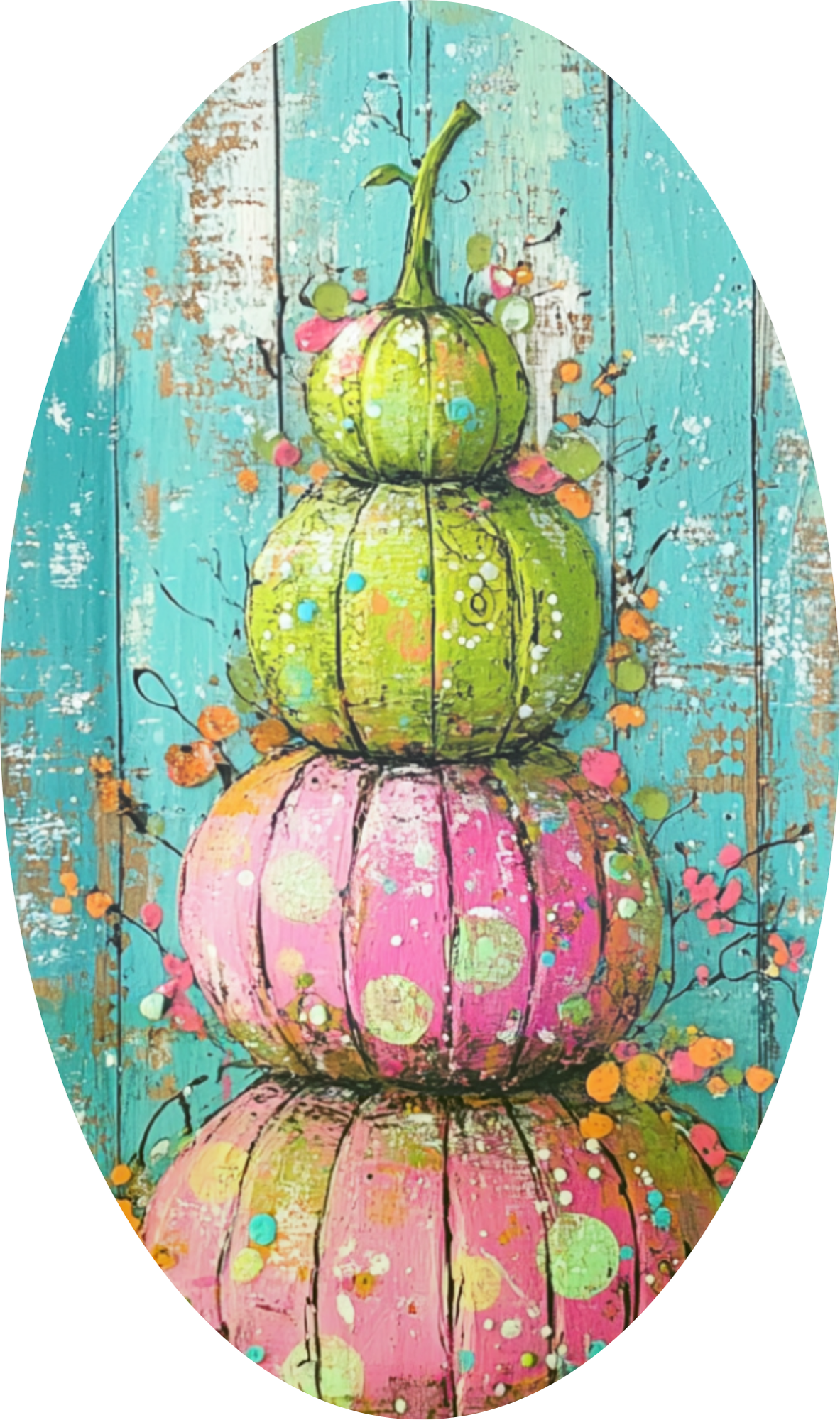 Whimsical Bright Pumpkin Stacker, Oval Sign