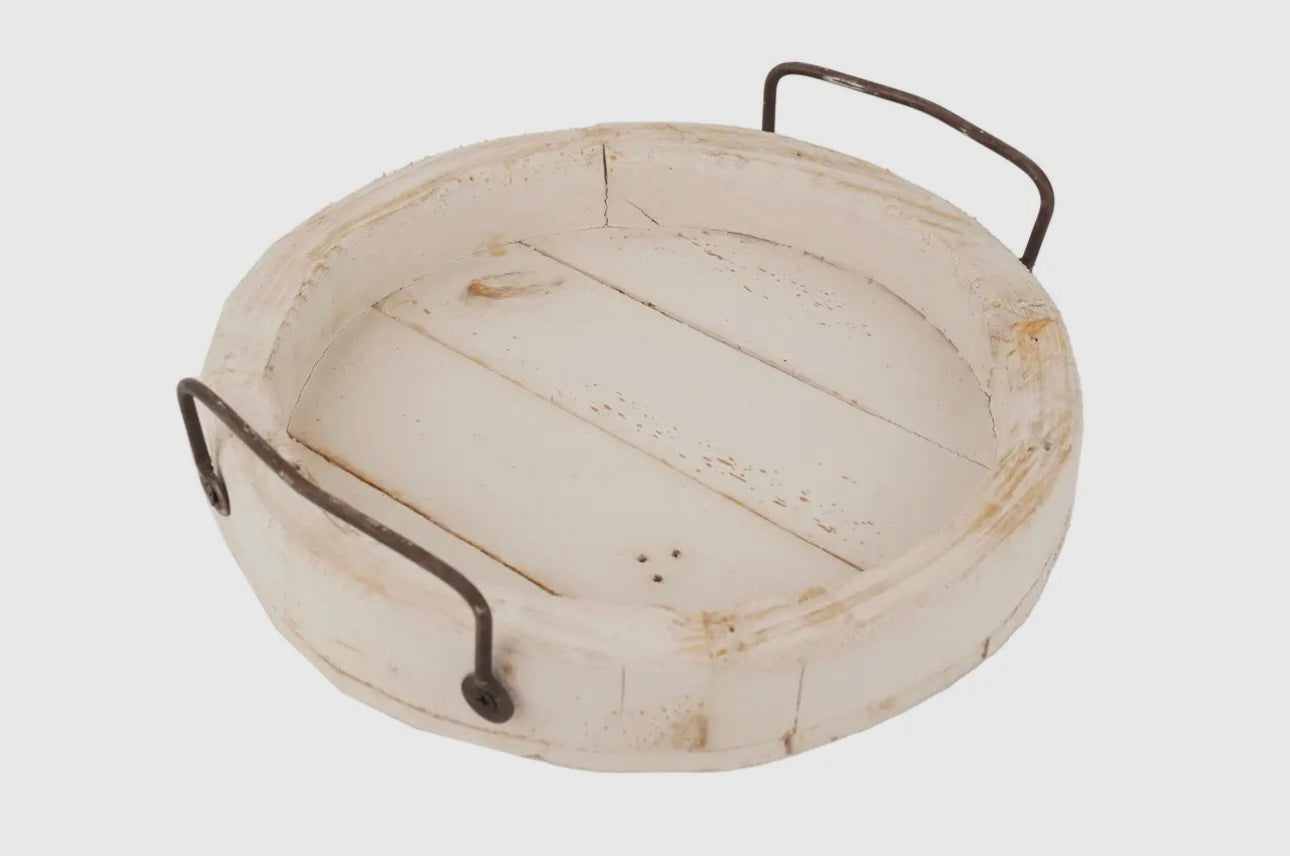 This is an UNFINISHED KIT with all the supplies you need to complete a beautiful Neutral centerpiece. See photos for an up close view of each stem and the chunky tray. This tray is distressed and imperfect and this is the nature of the design of this item. Every tray is slightly different due to the distressed look.